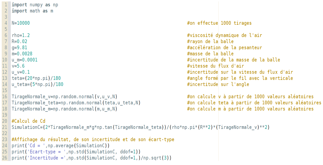 On obtient des résultats en réalisant le calcul pour différentes vitesses de flux d'air et d'angle. On peut utiliser une méthode Monte-Carlo pour obtenir un résultat précis et ses incertitudes.